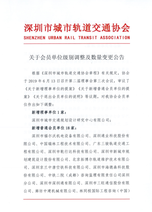 关于会员单位级别调整及数量变更公告